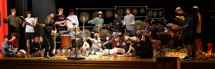 Each school day visit typically includes up to three simultaneous workshops by each performer in separate locations, (for a total of six workshops) and then ends with the spectacle of their duo concert, which can include a performance by the percussion workshop participants.